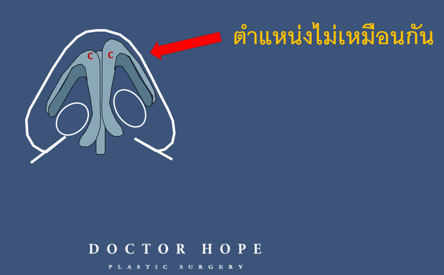 ตำแหน่งไม่เหมือนกัน ความแข็งแรงแตกต่างกันผลที่ตามมาก็คือปลายจมูกเอียงรูจมูกไม่เท่ากันครับ